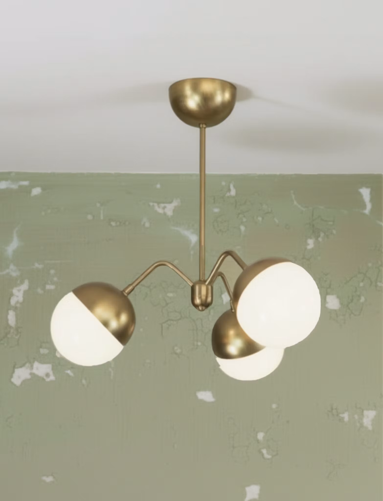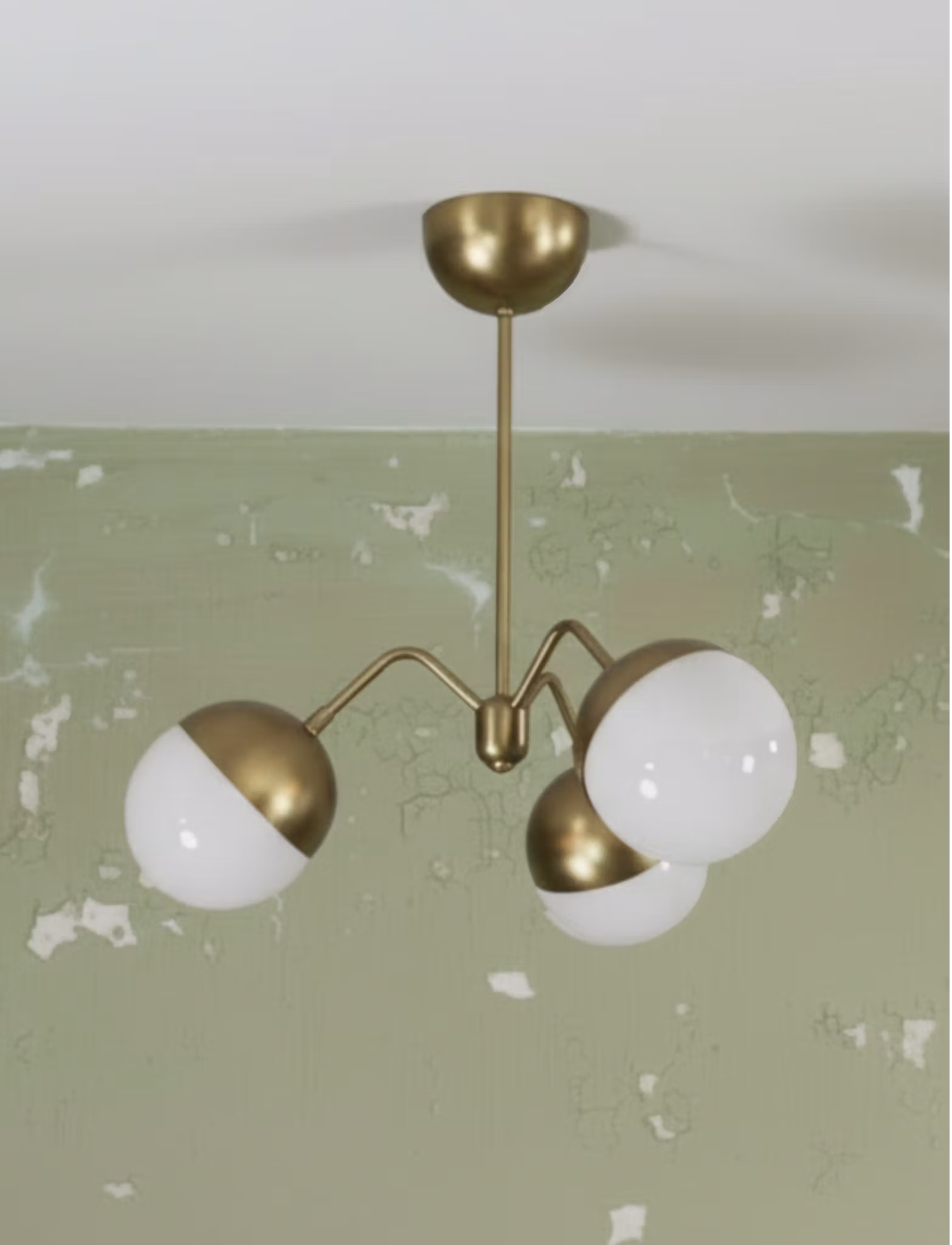 Small Faces is a bespoke lamp designed and handmade to order exclusively for 2 Little Spoons. Each lamp is hand cut, threaded, formed and then assembled using new components which are still pressed in the same design forms which have been used for over 100 years. They are 100% raw brass which will of course patina with age, which only adds and enhances the look of the era. Each lamp has 3 mouth-blown 12 cm opal glass globes with raw brass hats. The lamp is available with various drop lengths. The globes are mouth-blown and the hole opening will allow for E14 C35 or ST26 type lamps. We only use the best quality materials and all lamps meet CE regulations and are assembled and checked by an electrician.