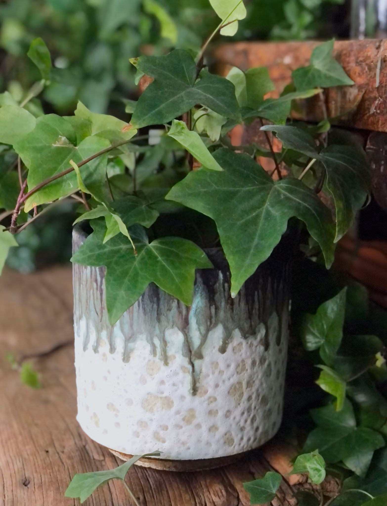 These beautiful clay pots are handmade according to traditional technology in the northern part of Portugal. Each pot is glazed several times with a distressed finish, so that each pot is totally unique. The pot is produced for indoor use, and keep in mind that it is made of a living material that in rare cases can let moisture through. The pot is available in three sizes.