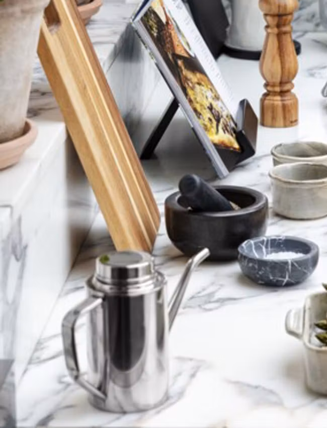 A classic and powerful mortar and pestle made of marble. It is suitable for all types of spices and herbs. Rub the inside of the mortar with a small amount of cooking oil before first use.