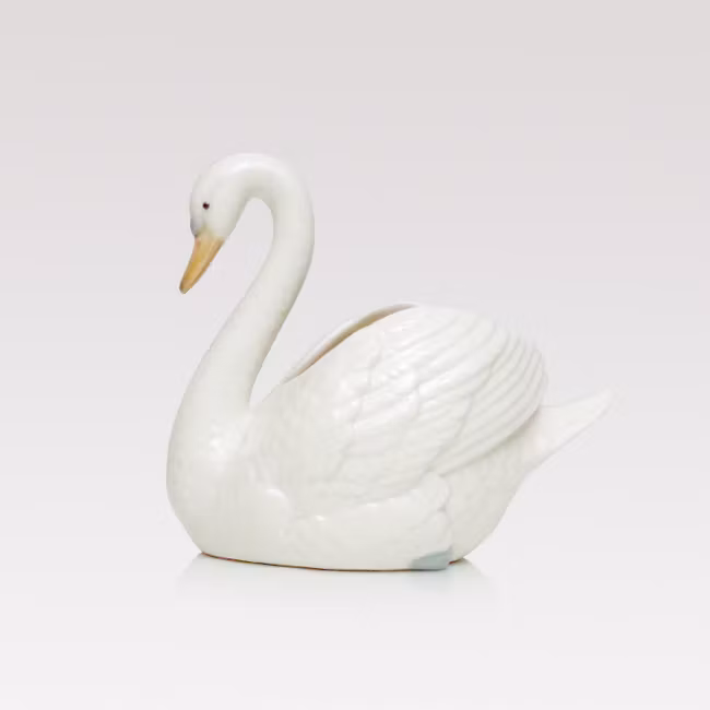 A cute little vase, bowl or pot in the shape of a swan. Made of porcelain by Spanish brand Nao. The swan is in good condition, but sold in used condition with slight wear due to its age.
